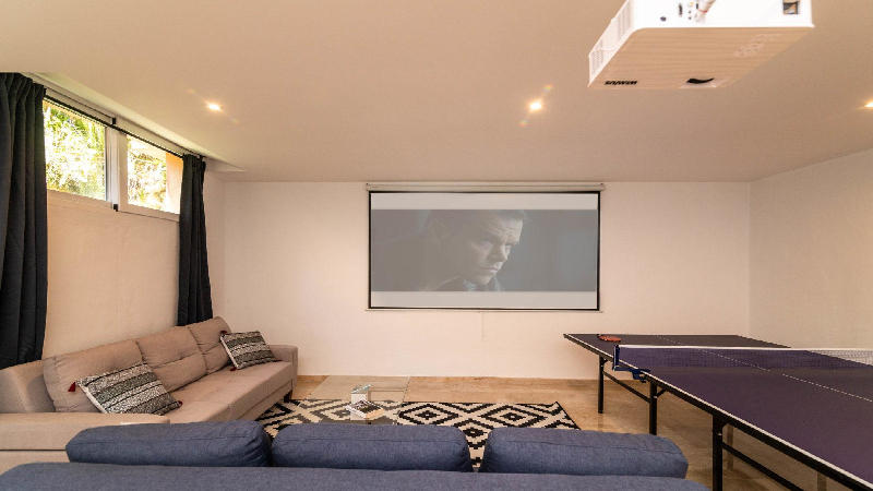 I husets källare finner ni ett sovrum, soffgrupp med projektor för gemensamma filmkvällar, bordtennisbord och en bastu. På markplan finns det moderna och fullt utrustade köket, ett ljust vardagsrum med stort matbord och utgång till er trädgård. På första våningen har ni tre välinredda och moderna sovrum med stora dubbelsängar och två badrum. Takvåningen erbjuder en inbjudande och mysig terrass med loungemöbler och bord, den perfekta platsen att njuta av Medelhavskvällen i goda vänners lag. Utomhus i er privata trädgård finns möbler där ni kan inta en frukost i det fria året runt och vid kvarterets gemensamma pool finns solstolar att koppla av i och möjligheten till ett svalkande dopp.