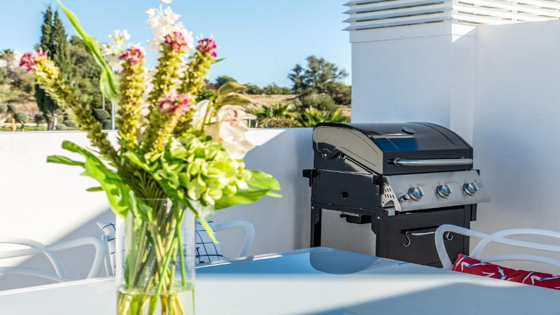 Takterass med pool, grill och matplats